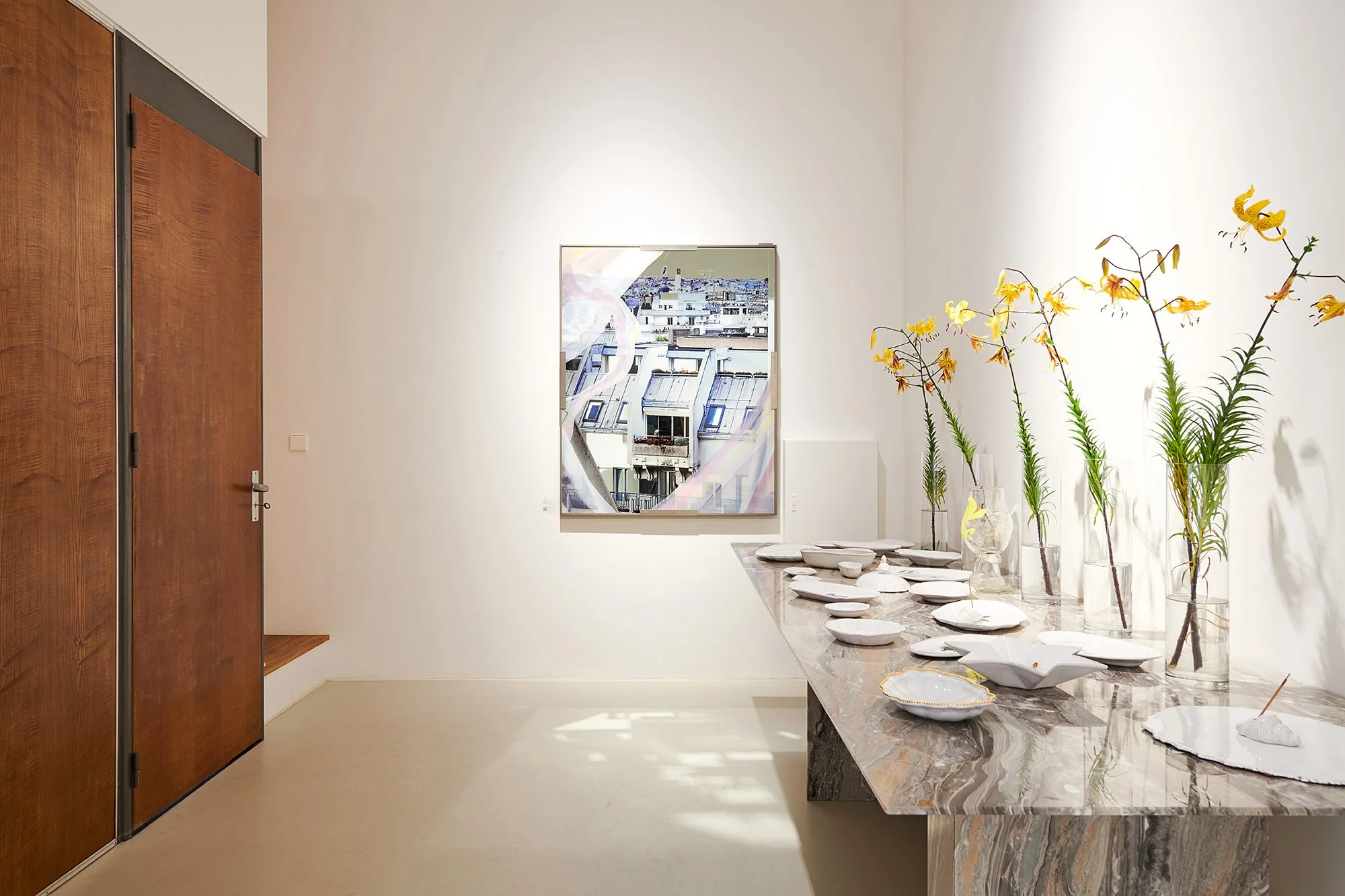 LIGHT ESPACEPINK FLUID 2023.105cm * 131cm, Glass, Mirror, Mixed MediaEd. 10겹겹이 놓여 있는 건물사이를 흐르는듯 지나가는 핑크 플루이드. 작품 문의