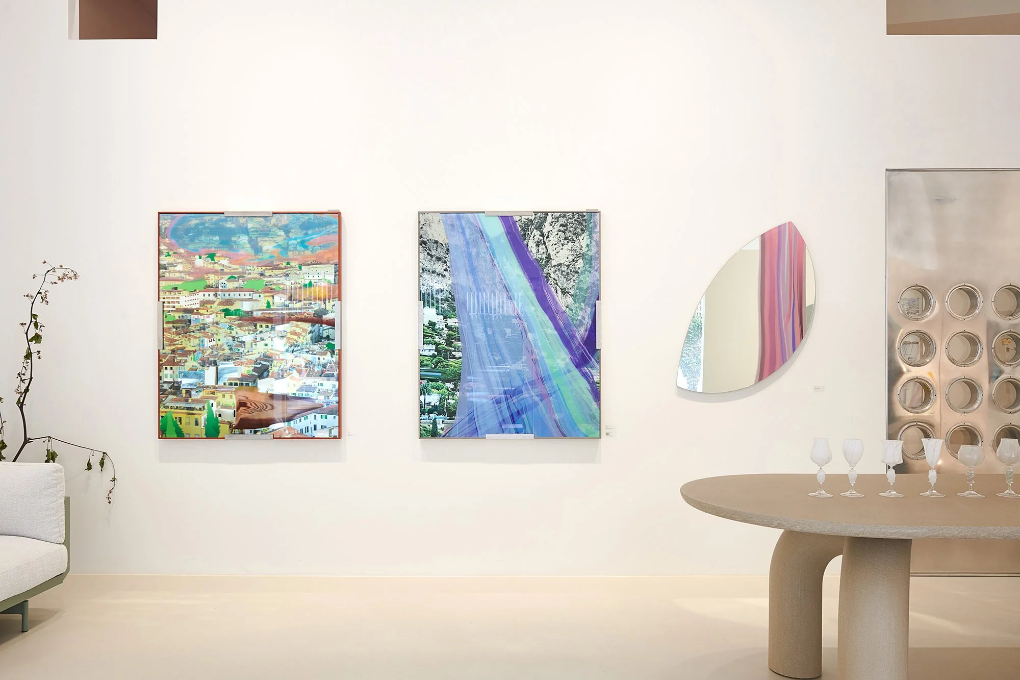 LIGHT ESPACEWATERFALL 2023.105cm * 131cm, Glass, Mirror, Mixed MediaEd. 10기차를 타고 가다 본 풍경. 흩날리는 커튼은 마치 폭포 같기도 하다. 작품 문의