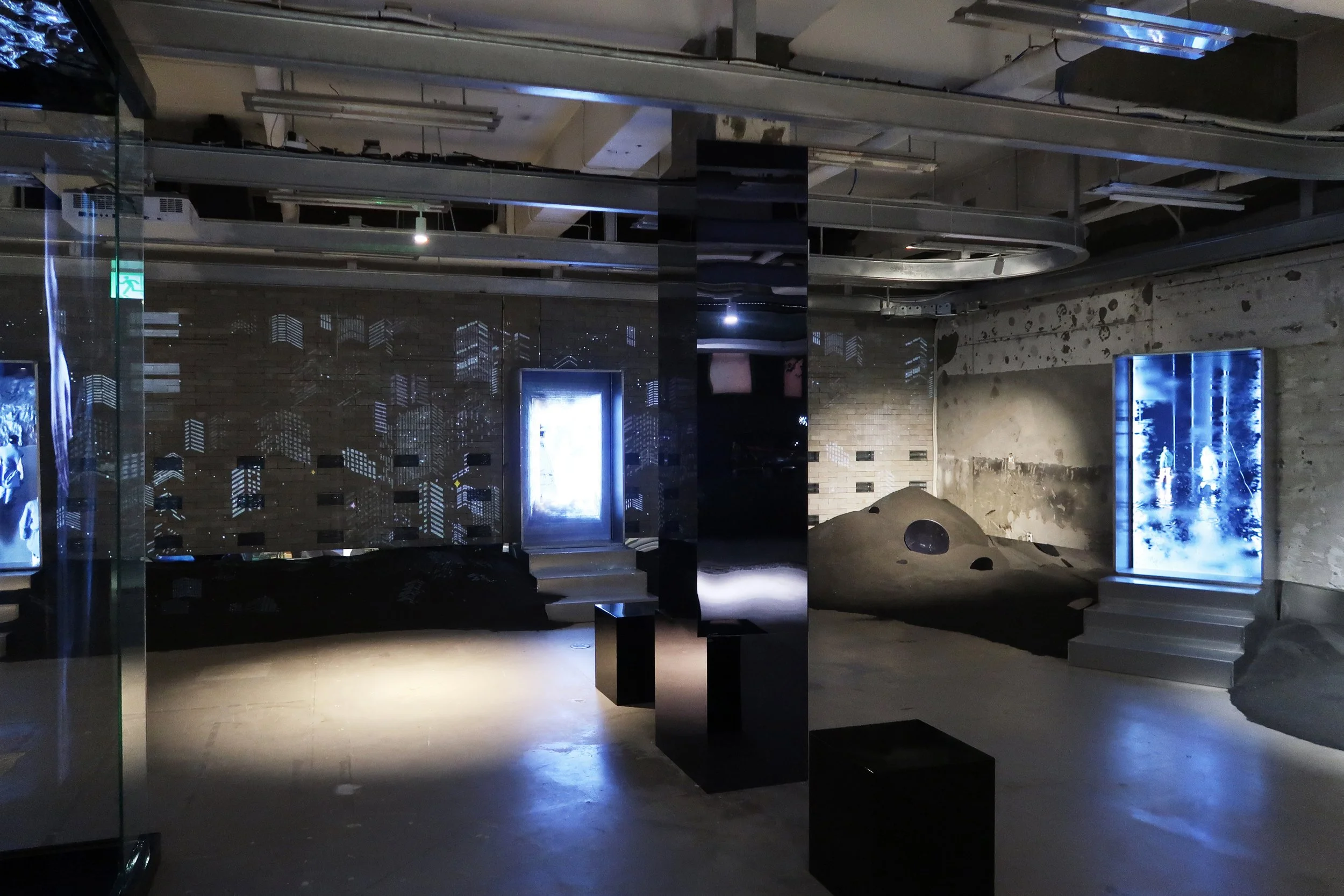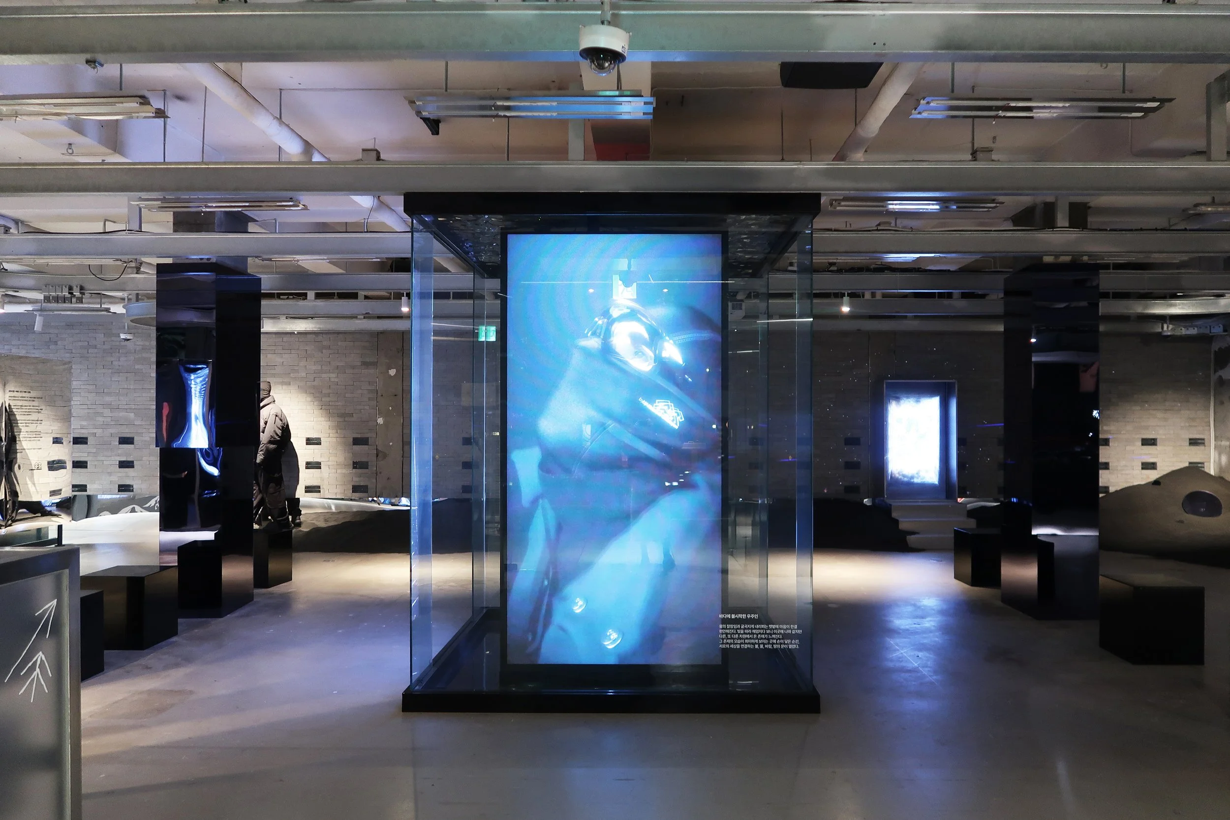영상으로 제작된 아바타들이 비춰짐으로 인해 공간 곳곳에서 패션쇼가 펼쳐지는 장면을 연출하였다.