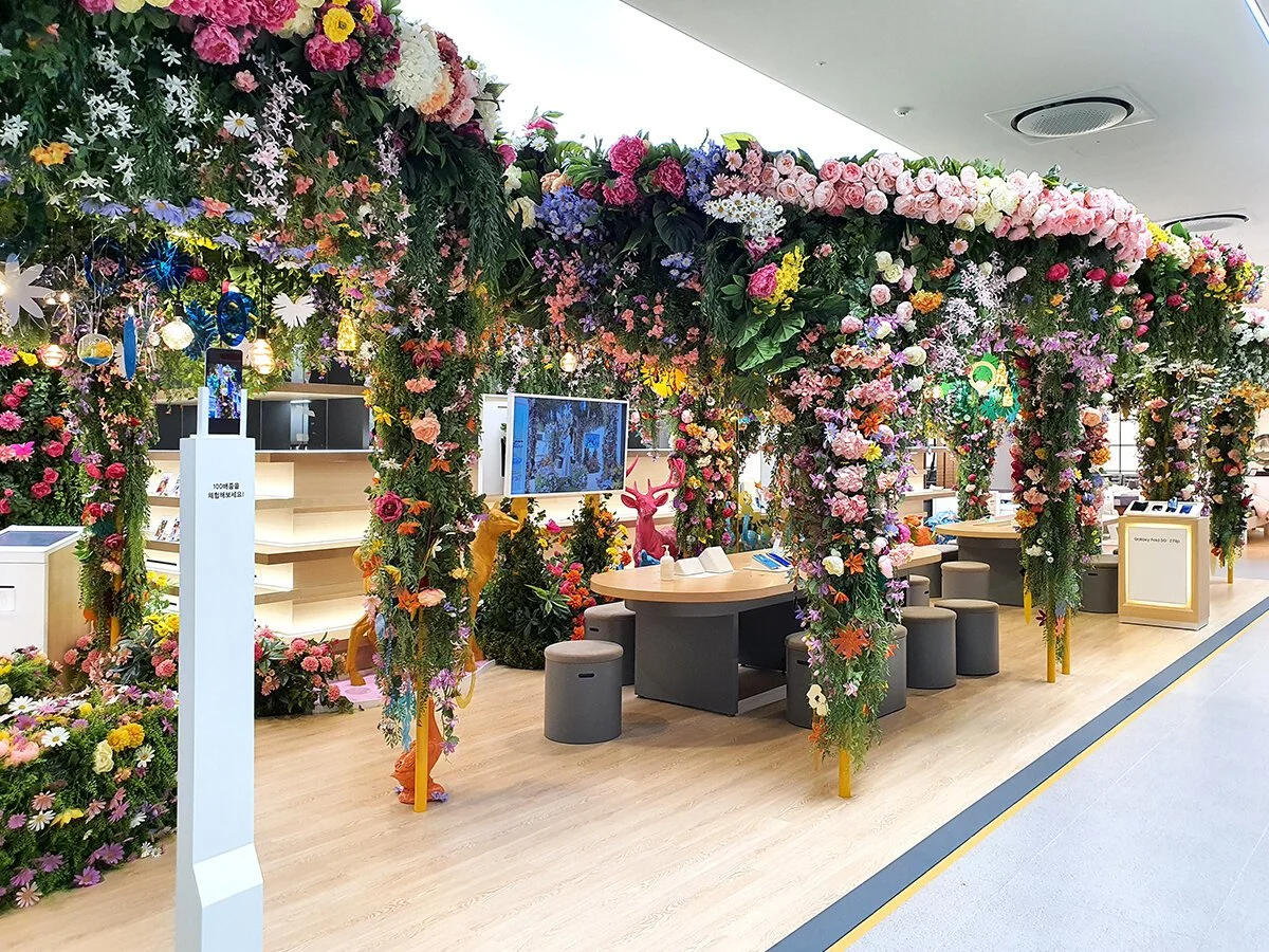 형형색색의 꽃과 모래 그리고 사슴의 조화는 환상에 세계에 온 듯한 느낌을 전한다.